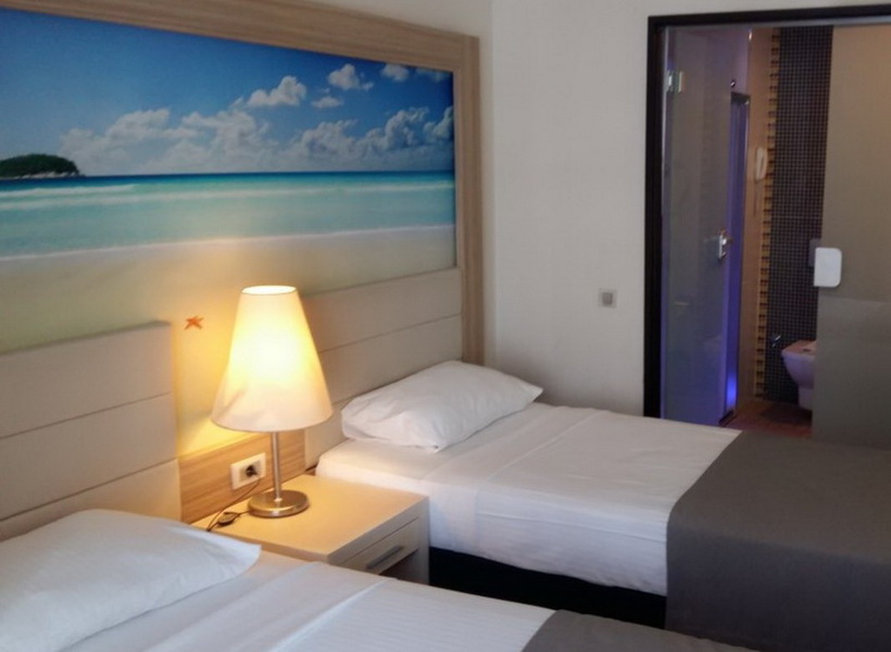 Отдыхали вдвоем с мужем в конце мая от туроператора Пегас. Прилетели ранним утром и еще примерно 1,5 часа в автобусе до самого отеля, так что на ресешпене были в начале 10 утра, что было на руку нам – как раз успели на завтрак. Питание отличное, особенно понравились мясные блюда, у них каждый день меняется основное блюдо дня – курица-индейка или рыба, огромное разнообразие фруктов (дыни и арбузы уже были). Заселили нас после 12 часов дня в номер с 2-мя односпальными кроватями, минибар уже был наполнен (осторожно – наполнение потом платное).