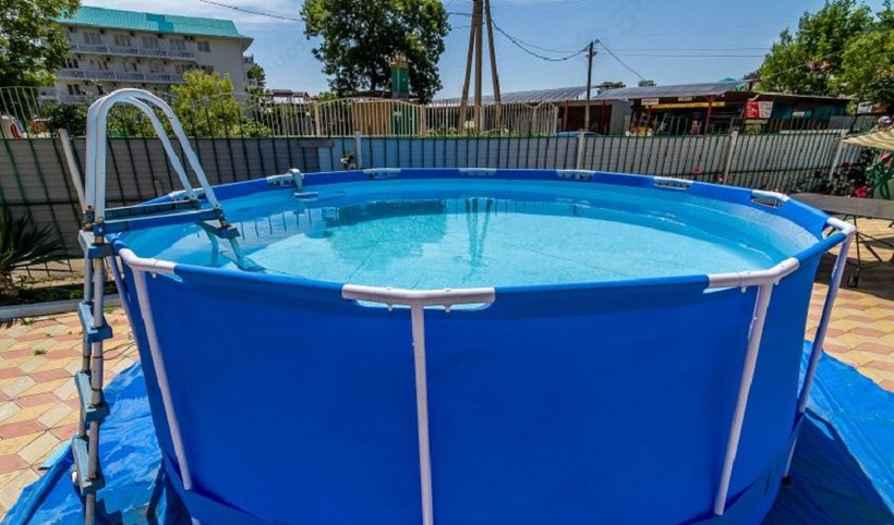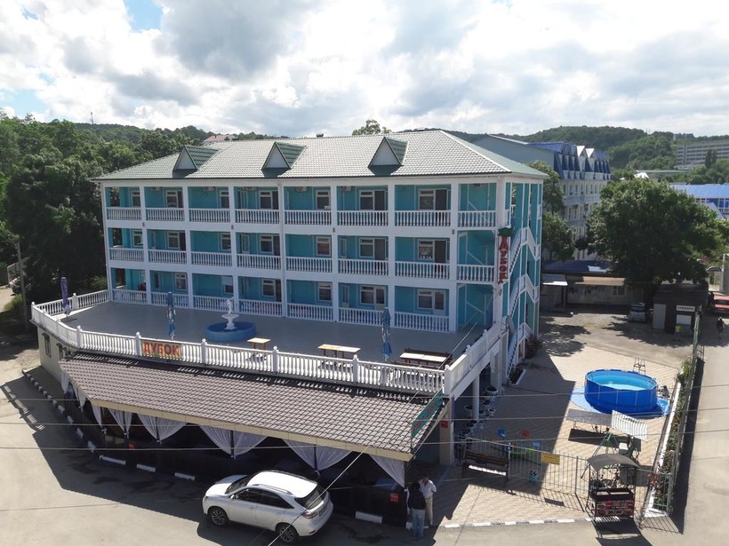 Территория без зелени, на террасе нелепый пустой фонтан. А заявленный бассейн, оказался большим корытом, в котором вода подозрительно попахивала.