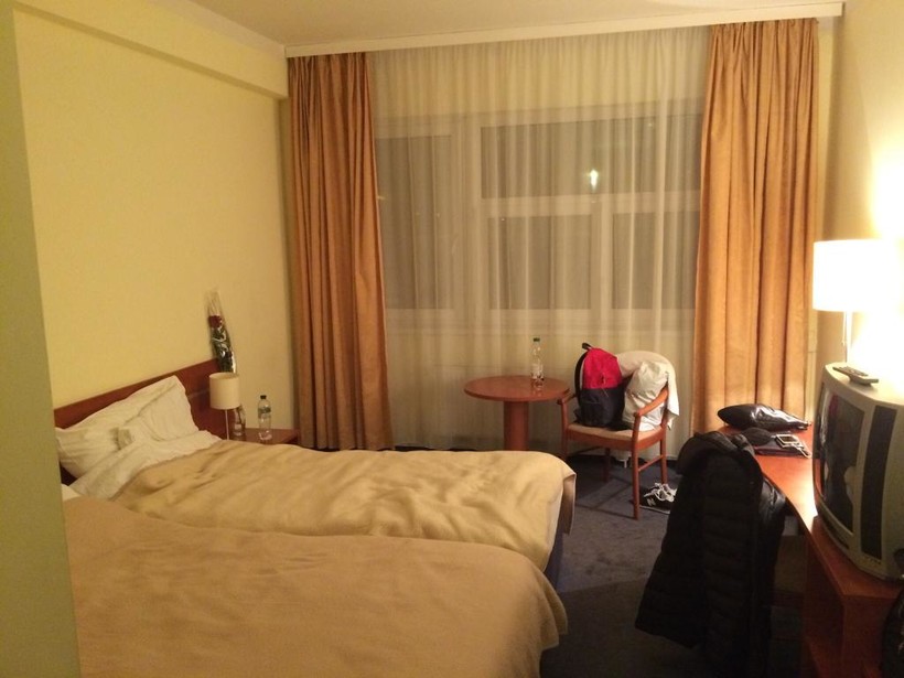 Я и моя семья заказали 5-дневную поездку в Прагу через туристическое агентство, жили как раз в этом отеле. Сразу хочу сказать, что для 4-звездочного отеля, очень и очень слабо. Комната, в которой я жил, была двухместной (стандарт) и довольно таки просторной. Мне так хотелось сделать себе чай или кофе, но так и не нашел кулер с водой (в 4-звездочном отеле!). Сама комната была чистой, но очень устаревшей. Занавески даже не закрылись полностью, оставляя щели со светом, из-за которых я не спал в первую ночь. Светобоязнь. :)