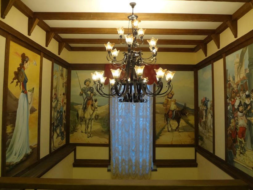 Горячий напиток при входе, хорошие книги, игры, хорошо обыграна тема Дон Кихота и его путешествий