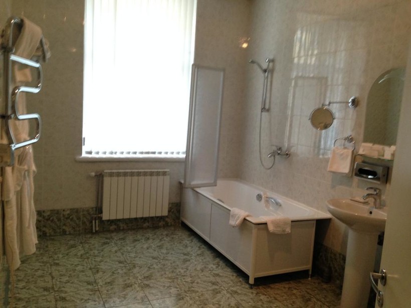 В номере не очень тепло, в ванной совсем холодно, т.к.там отсутствует полотенцесушитель, отделка в с/у уже старенькая, замок в двери номера странно работает, чтобы закрыть/открыть надо минуту-другую постараться