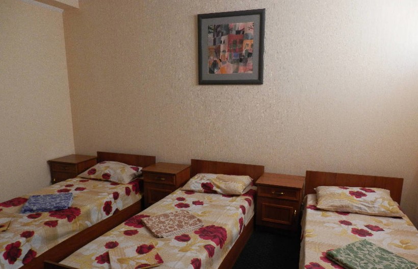 Во-первых, номер мне достался на три человека, но дело в том, что цена была завышенной, а из мебели было только 3 кровати, стол без стульев и сейф (лучше уж бы холодильник поставили).