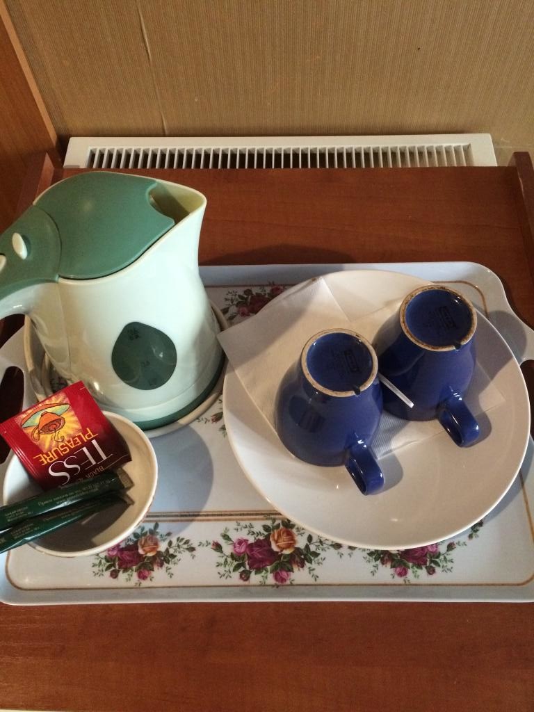 - чайник, чай и чашки в номере.