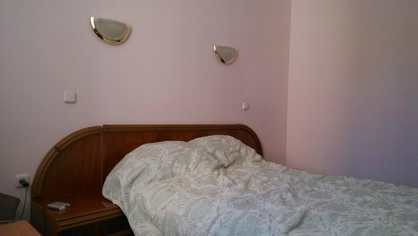 Теперь расскажу о самом номере. Везде чистота. Но постельное белье было, как и само здание, не новым, слегка потрепанным. Пододеяльник просвещался от старости. Но главное, все было чистым. Единственный недостаток номера - скрипучая кровать. Поэтому ночью нам расслабиться особо не удалось. Боялись, чтоб соседи не слышали, чем мы там занимаемся ;)
