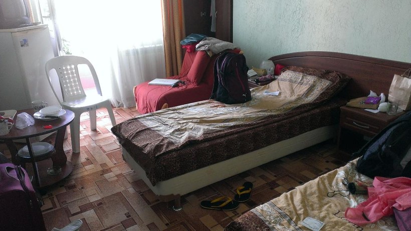 С виду здание выглядит нормально, на входе нас встретил хозяин отеля, заселили нас в номер, и тут могу сразу выявить ряд недостатков: