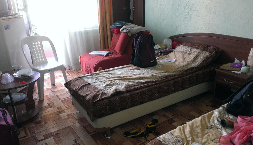 Брали самый дешевый трехместный номер, очень душно, вентилятор громкий, нет микроволновки на кухне, показалось, что перед нашим приездом комнату не прибирали