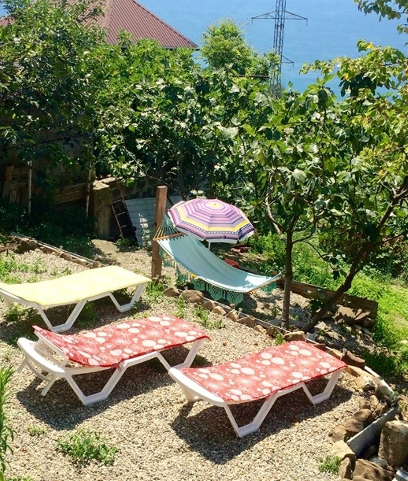 Кому лень топать на море 12 минут до пляжа, для таких во дворе есть лежаки и гамак
