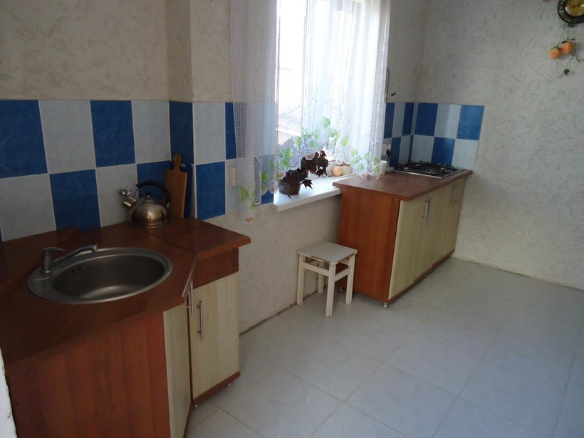 Кухня общая для трех номеров. На ней есть все: посуда, чайник, микроволновка. Утром очень удобно попить кофе или чай и позавтракать.