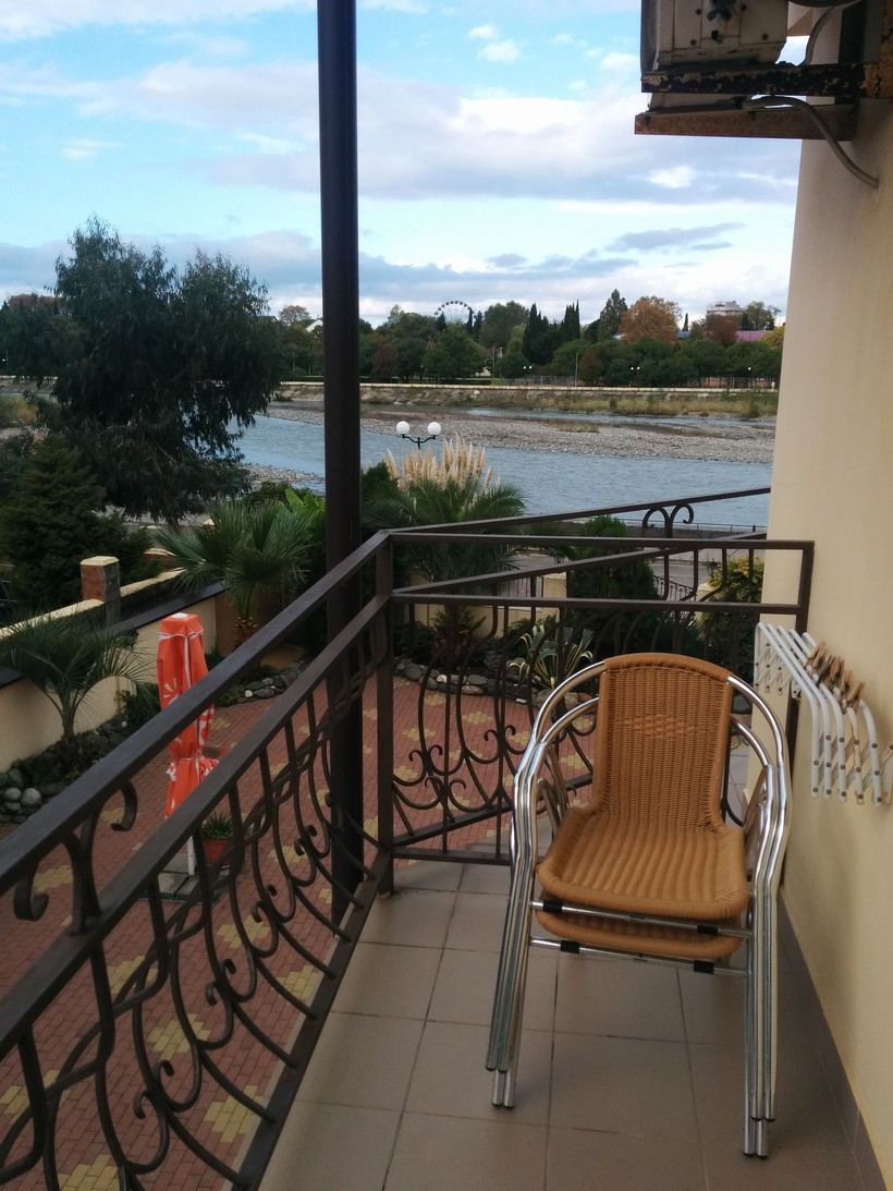Останавливались в отеле на майские праздники,на улице было прохладно, а в номере тепло и комфортно, расположение отеля очень хорошее, на набережной реки Мзымта до пляжа примерно 10-15 минут пешком