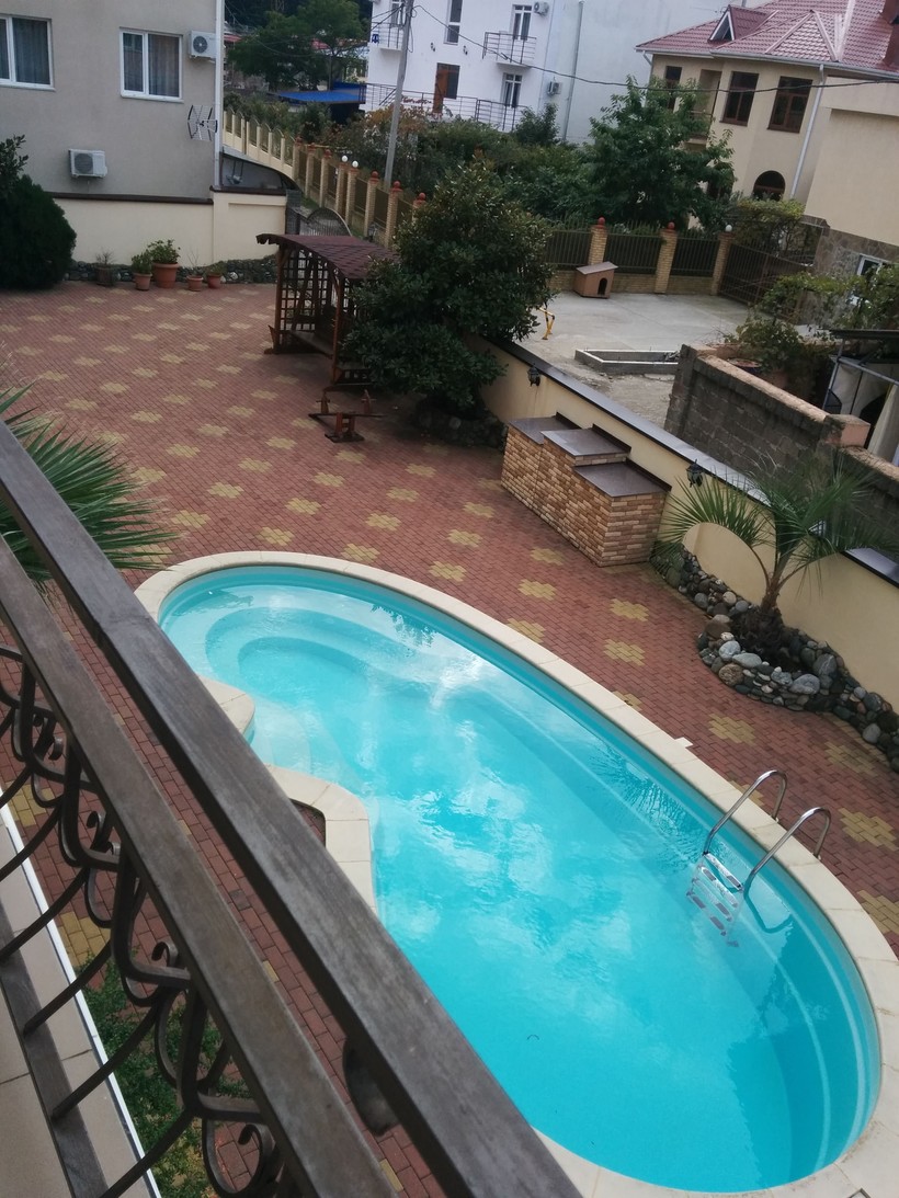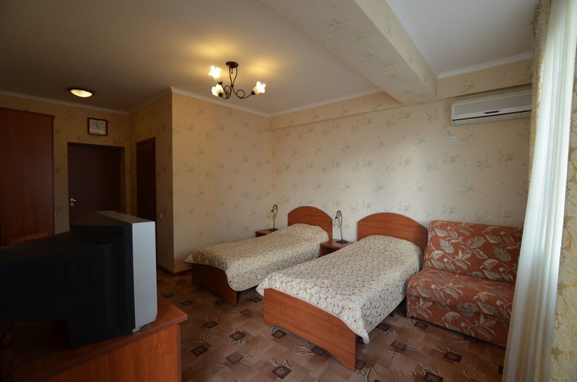Номера уютные, балконы со стульчиками и креслами, сауна по запросу, бассейн и площадка детская во дворе