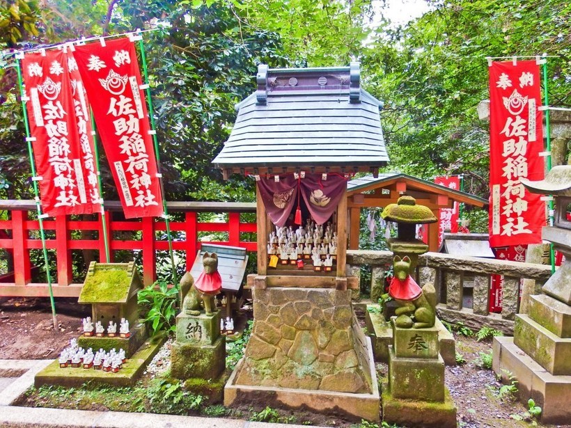 Саске Инари называют еще лисьим храмом, в честь кицунэ - спутников богини (или все таки бога? Японцы до конца так и не определились) Инари. Лисы тут, действительно, везде. Не настоящие, конечно - всего лишь статуи. Они охраняют главные ворота, их можно встретить на обочине дороги или у одного из алтарей. Статуи украшают красными нагрудниками, выглядит это довольно забавно.