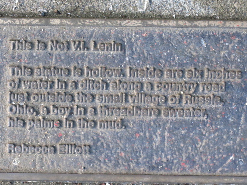 И хотя, выглядит статуя действительно один в один как Владимир Ильич, табличка у постамента говорит обратное.