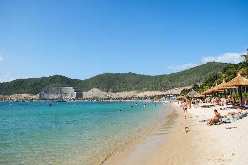 Пляж. После насыщенной программы, мы продолжили изучать территорию парка развлечений Винпёрл, и пришли искупаться в море на местный пляж. Помимо всего прочего здесь можно взять на прокат аквабайк и покататься.