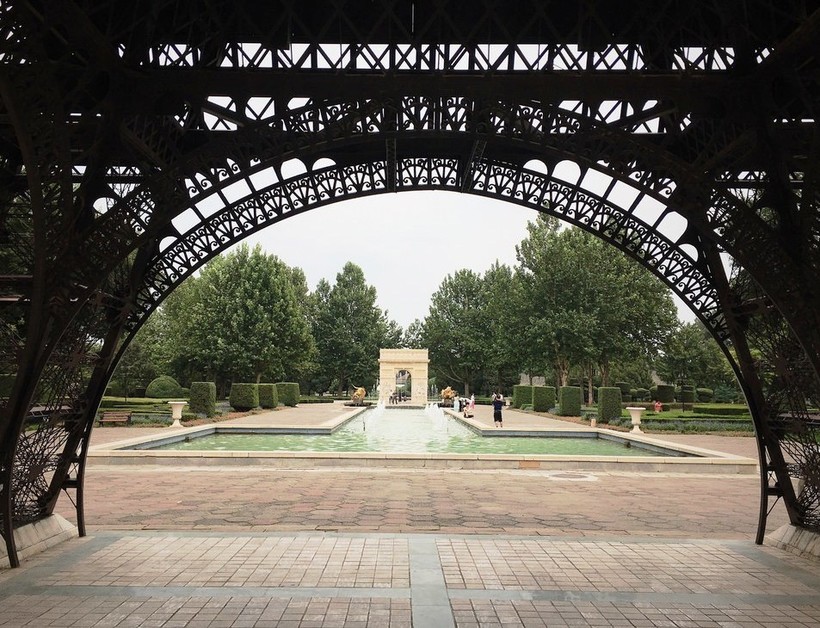 Сразу, практически на входе, бросается в глаза Красная площадь. Есть и египетские достопримечательности, и европейские.Я с удовольствием побродила вдоль парижских фонтанов и постояла под колоннами древнего Египта.
