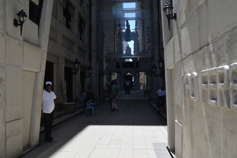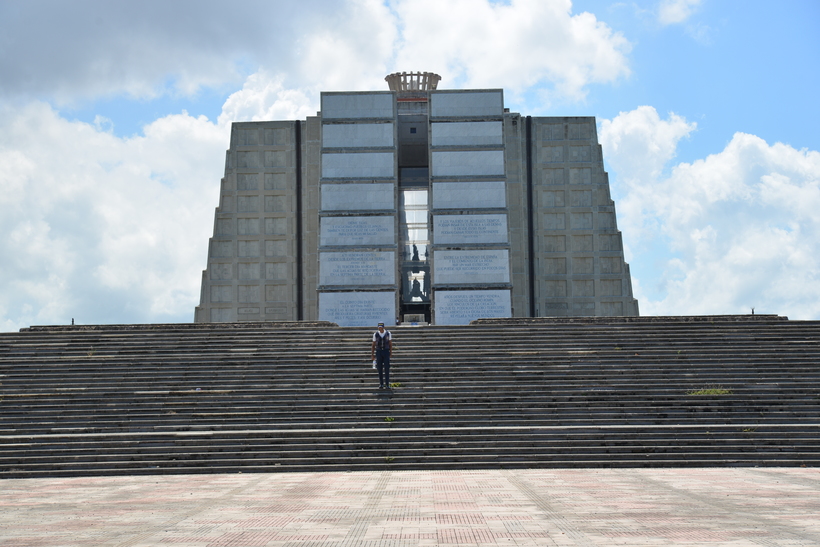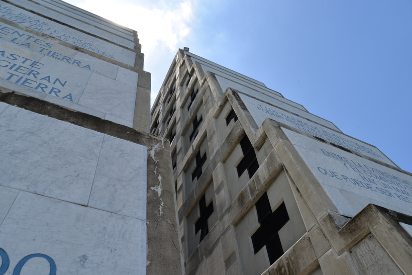 Удивило то, что, оказывается, Маяк построен относительно недавно – в 90-х годах ХХ века. Выглядит он гораздо более старинным, словно средневековая крепость. Это монументальное бетонное здание выполнено в форме лежащего креста. А если смотреть на него с земли, можно уловить сходство с пирамидами в Мексике. Стены маяка украшены мраморными плитами, с выгравированными на них высказываниям испанских мореплавателей. И все же один обязательный атрибут классического маяка при строительстве был соблюден. На вершине установлено более сотни ярчайших прожекторов! Правда включают их только по основным национальным праздникам (с целью экономии электричества). Экскурсовод рассказал, что прожекторы проецируют крест в ночном небе – могу себе представить, какая это красота!