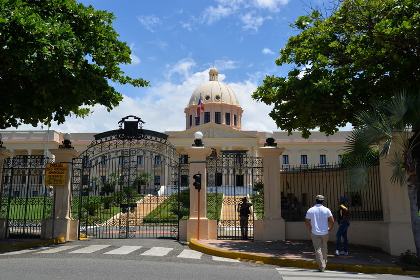 Национальный Дворец мы посетили в ходе экскурсии по Санто-Доминго. Остановка здесь была совсем короткой, так как вход внутрь не предусмотрен. Туристам предлагается посмотреть на здание через кованый металлический забор и послушать небольшое описание гида.