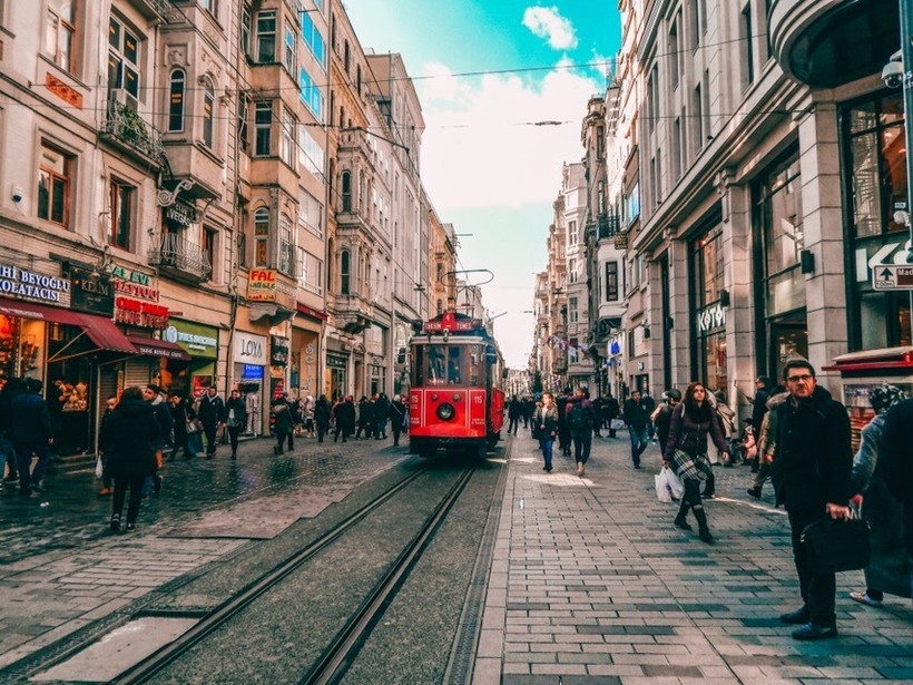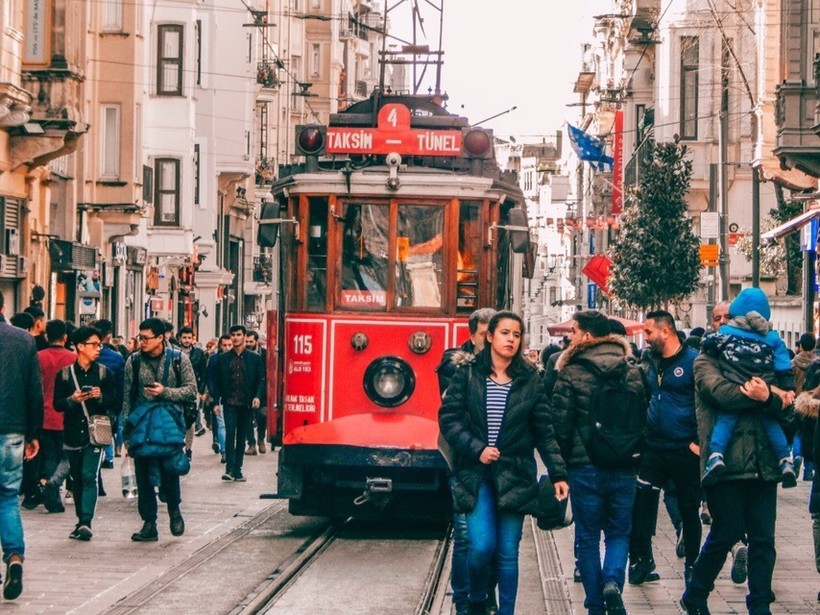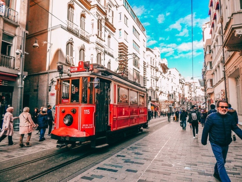 Исторический трамвай на улице Истикляль (Стамбул, Турция)