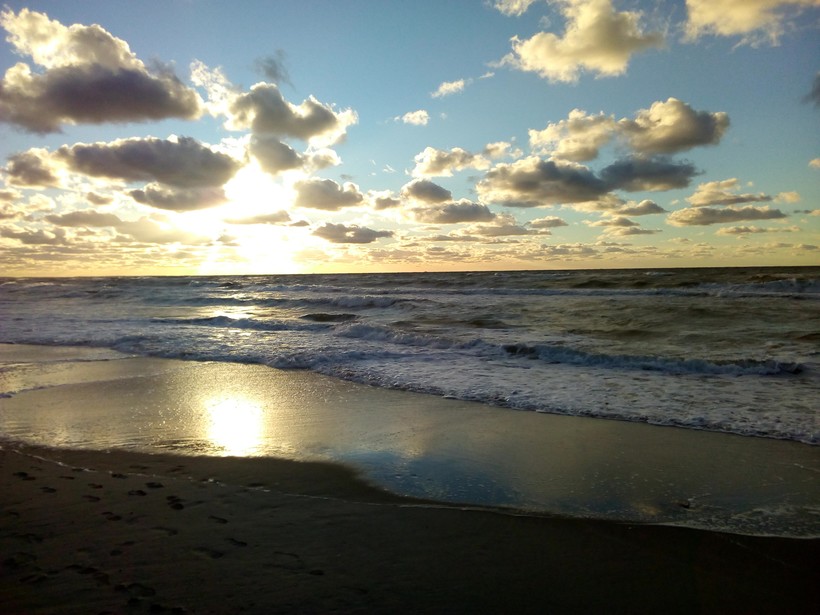 Весь пляж на закате принадлежит только вам и птицам.