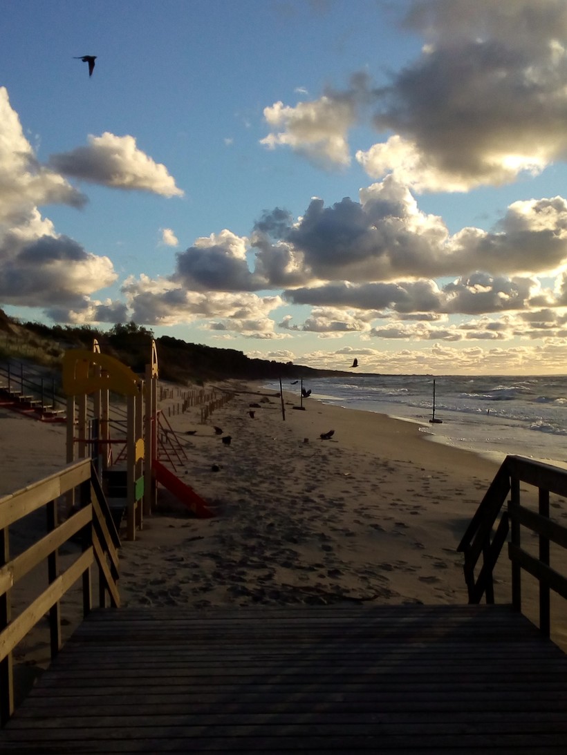 Тогда вам прямая дорога в конце сентября начале октября в поселок Лесное. Этот поселок - поставщик радуг на всю Область. Даже если не идет дождь все равно можно увидеть, как далеко в море раскидывают свои рукава радуги. Вертикальные в облаках или традиционной дугой, двойные... Яркое солнце, постоянно дующий ветер, белоснежные дюны, тишина, штормовое море. Это один из самых низких туристических сезонов и вашим собеседниками, когда вы придете смотреть закат на пустой пляж будут только две вороны, которые живут там несколько лет про променадом около кафе, единственного,на променаде, которое работает там круглый год. Огромные панорамные окна кафе - это идеальное место для наблюдения за штормом, кажется, море тоже решило заглянуть на чашку кофе.