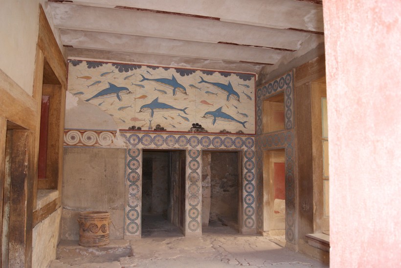 Настенные фрески — копии. Причем, как можно убедиться, посетив Археологический музей Ираклиона, подлинных фрагментов сохранилось очень мало, так что изображения тоже во многом «достроены».