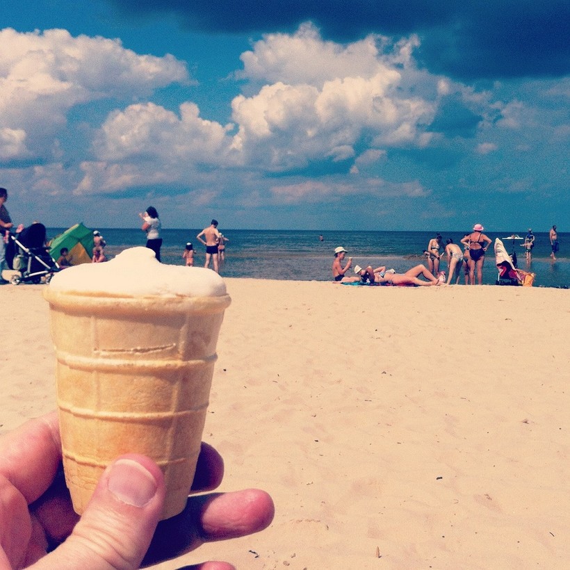Так как я выросла в Латвии, на пляж мы катались часто, если погода позволяла. Ведь латвийское лето – оно такое коварное... Вроде и солнышко светит, а вода может быть холодной. Хотя детям обычно всё равно. У берега мелко, и можно плескаться хоть до посинения (зачастую так и плещутся).