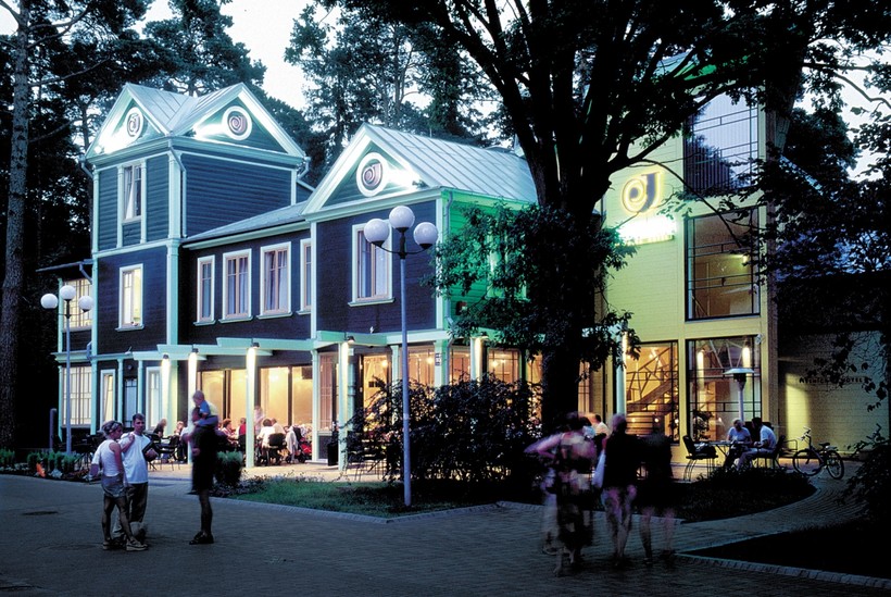 - На улице Йомас стоит отель «Jurmala SPA» - один из лучших SPA-отелей в Латвии. У нас, к сожалению, с этим делом вообще беда, с тем же Друскининкаем не сравнить. Но здесь очень недорогая и разнообразная SPA-зона, коктейльная стойка прямо в бассейне, бани... Только на новогодних каникулах сюда дикие очереди стоят. Приезжают туристы, и все хотят в теплую водичку. А на верхнем этаже отеля – ресторан с панорамными окнами. Оттуда видно и улицу Йомас, и близкое море.