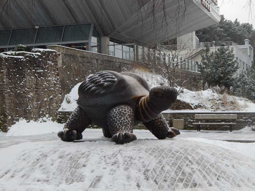 Скульптуру «Черепаха», которую можно встретить, наверное, во всех ТОПах достопримечательностей Юрмалы, я, конечно же, видел, когда заезжал в марте 2018 года на самый известный морской курорт Латвии.