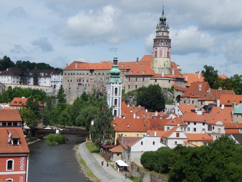 - Замок. Во-первых, он в городе Чески-Крумлов сам по себе достаточно оригинальный. Во-вторых, на башне Градека (старейшая часть замка) имеется смотровая площадка, а в любом старом городе смотровая площадка — вещь незаменимая.