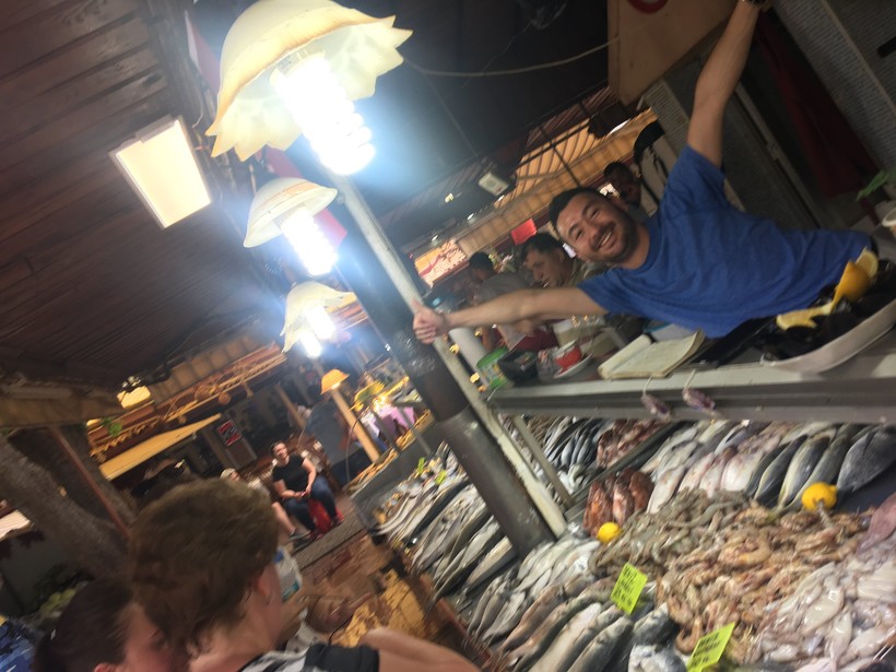 Здесь можно выбрать понравившуюся вам рыбку и попросить ее приготовить. Деньги за приготовление берут минимальные. А на вкус -- просто пальчики оближешь! Мы были здесь большой компанией, каждый выбрал с прилавка что-то свое, еды было много, а приготовили ее очень быстро и качественно, буквально минут за 20. Средний чек дешевле чем в ресторане, а впечатлений в разы больше!