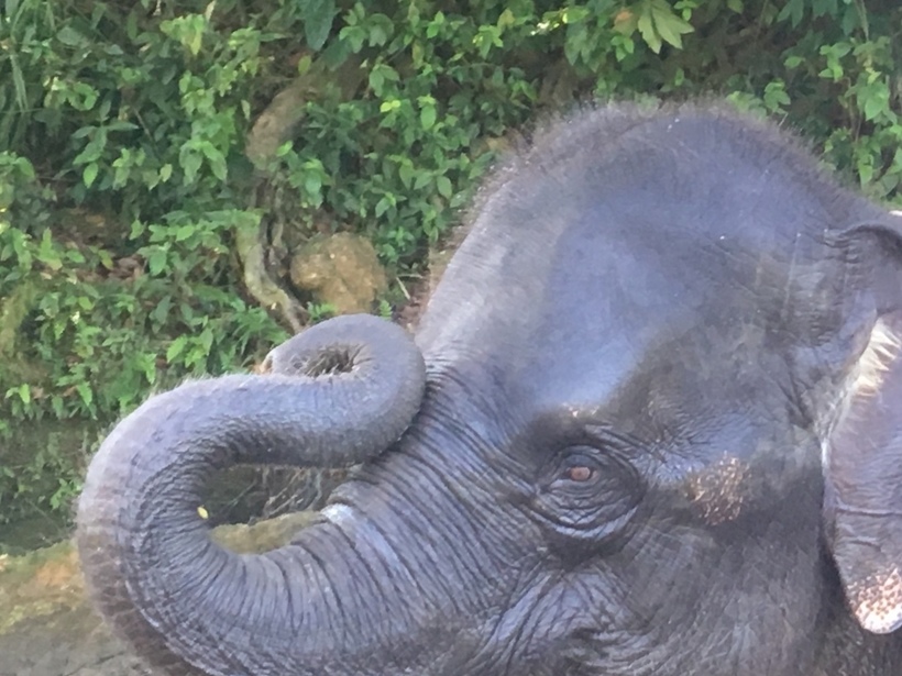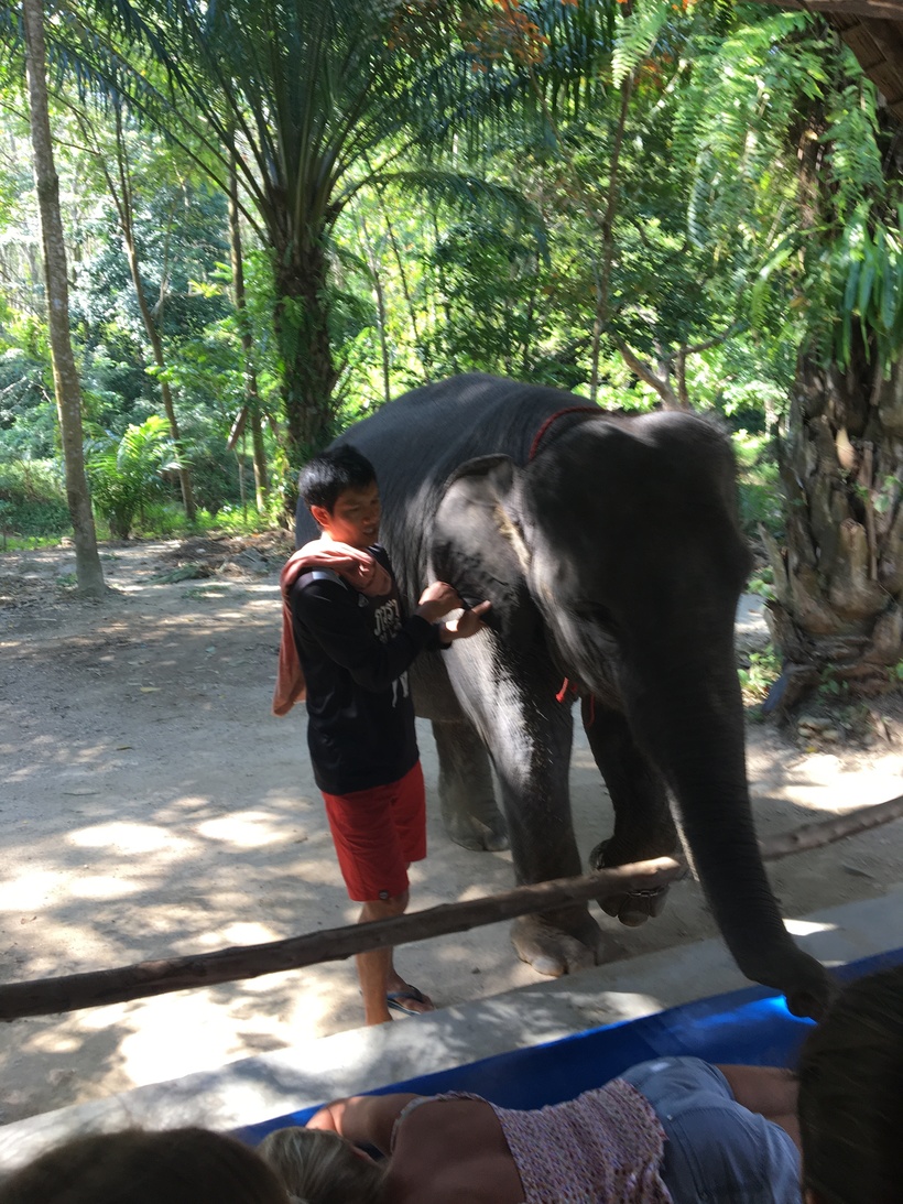Слоник делал массаж хоботом, всем желающим туристам. Очень смешно ел бананы, в общем смеялись мы от души.