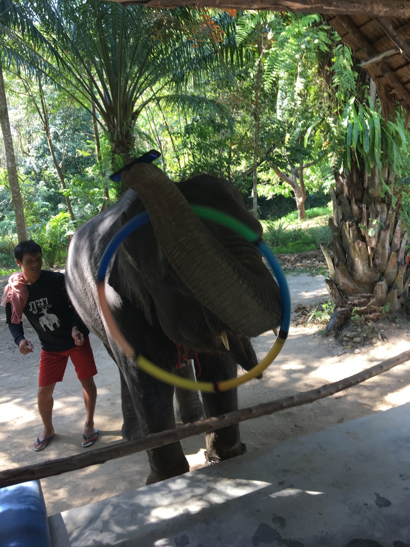 Шоу с обручем, заслужило много аплодесментов, чем громче хлопаешь, тем больше слоник старается.