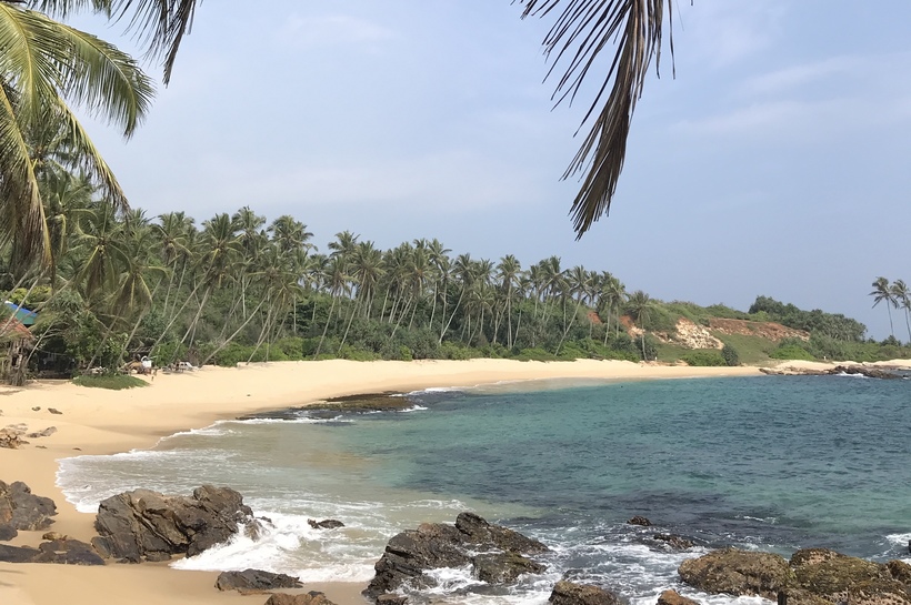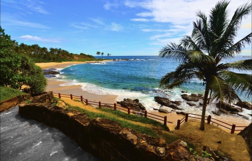 Пляж этот не популярный, относится он большей своей частью к отелю Eva Lanka (Будет для Вас ориентиром). Если попробуете пройти через отель, Вас попросят купить напитки, а они в отеле не дешевые. Есть и другой вариант. Слева от отеля в 500 метрах есть тропа, которая сворачивает к океану, по ней то вы как раз и сможете спуститься к пляжу. Лучше всего этот маршрут проделывать на байке, потому что из общественного транспорта курсируют автобусы, а отель для них - это не общественная остановка, да и по тропе придётся топать прилично.