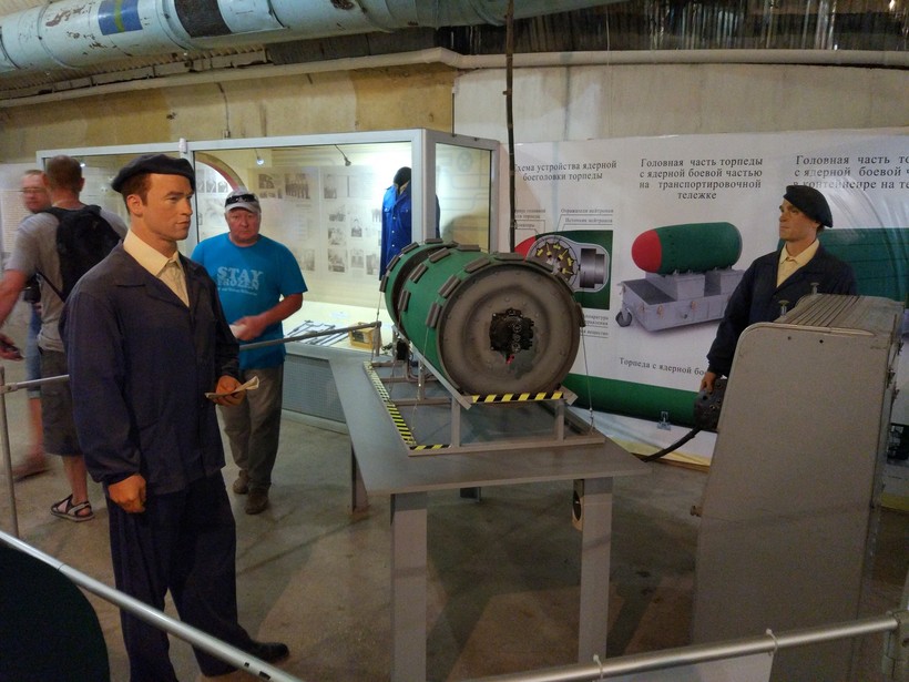 Из экспонатов представлены подводные аппараты, фрагмент подводной лодки, чтобы иметь представления о технических характеристиках этого корабля, зал где проверялись ядерные снаряды, рассказывают, как, кто и сколько времени это делал.