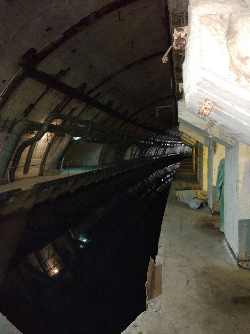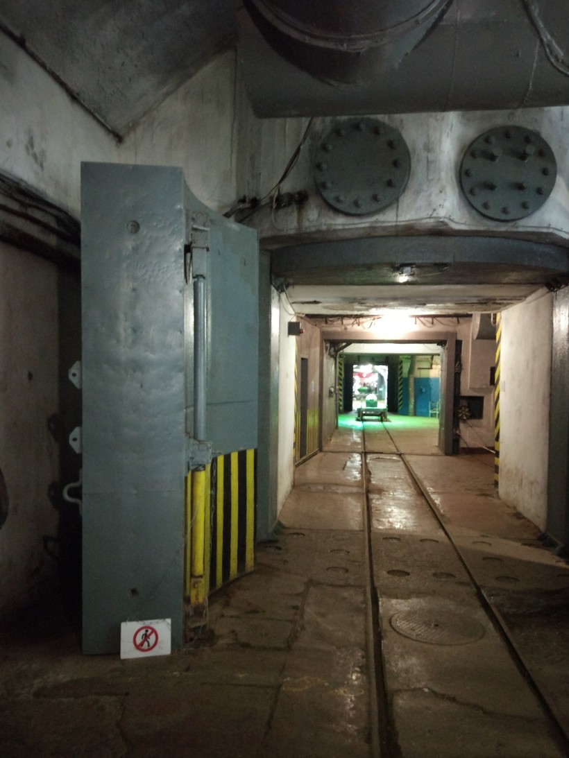 В нескольких залах по полу проложены рельсы. Это сделано для обязательно ручной транспортировки из хранилища ядерных зарядов для ракет в зал проверки.