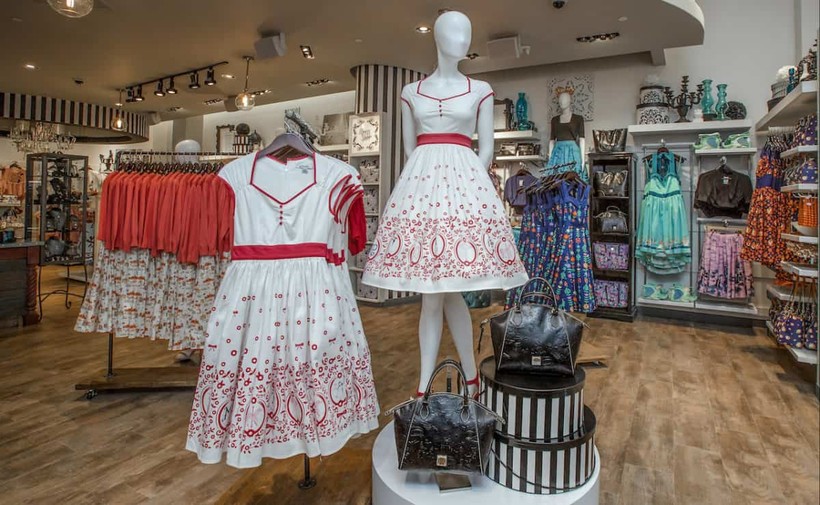 Помимо Дисней-стора в Даунтауне находятся другие магазины. Например, небольшой одёжный, чисто женский бутичок, в котором продаются современные, не карнавальные платья, стилизованные под костюмы диснеевских принцесс.