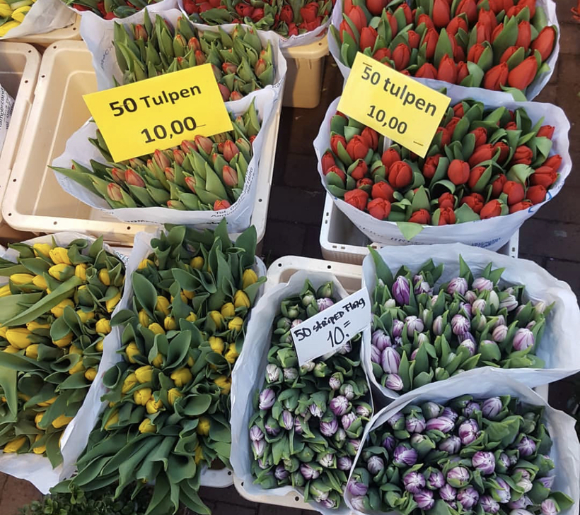 1. Возможность купить срезанные цветы по очень приятным ценам. Например пачка тюльпанов из 50 штук обойдётся вам всего в 5-15€, цена зависит от сорта и состояния цветов. Кроме тюльпанов тут есть и другие цветы - розы, ранункулюсы, подсолнухи, амариллисы, лизиантусы, герберы, стрелиция и прочие. Некоторые продаются поштучно (чаще это экзотические цветы), остальные по 10 штук. Цена 10 роз в среднем 5-10 евро. Вспоминая шутку накануне 8 марта, что цветы в России по цене кокаина, и видя местные цены, хочется скупить этой красоты да побольше!