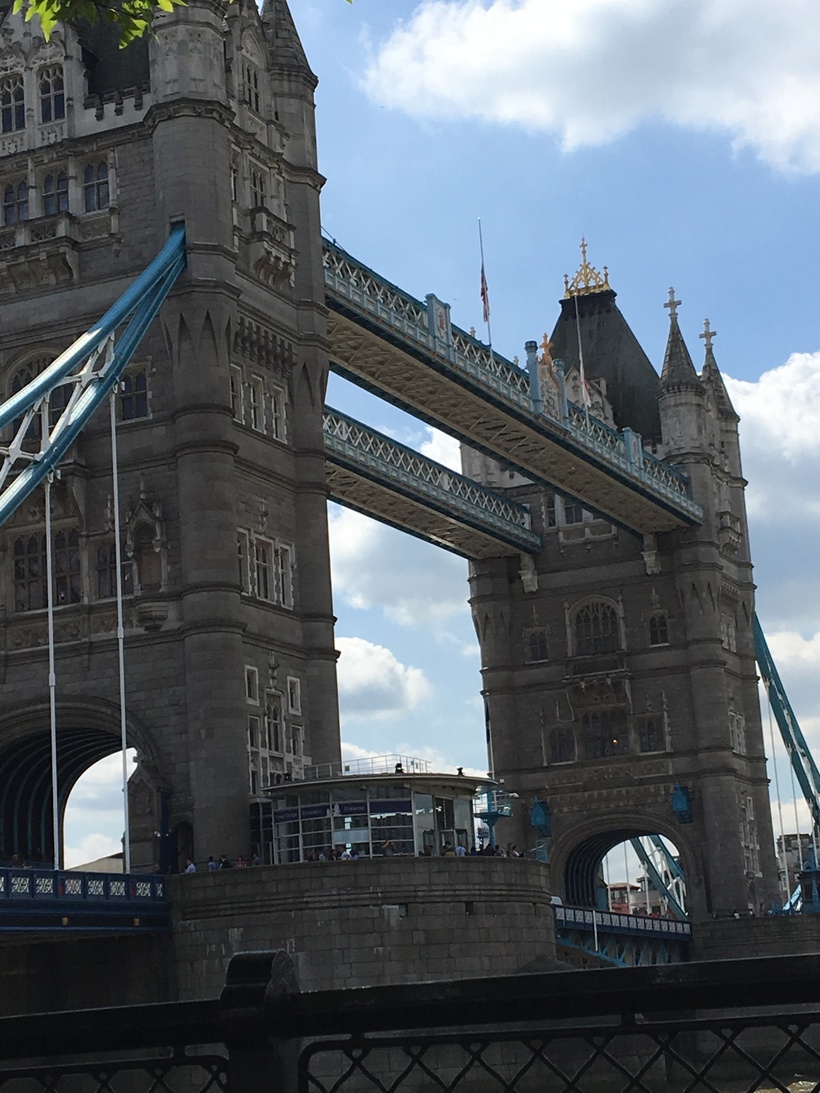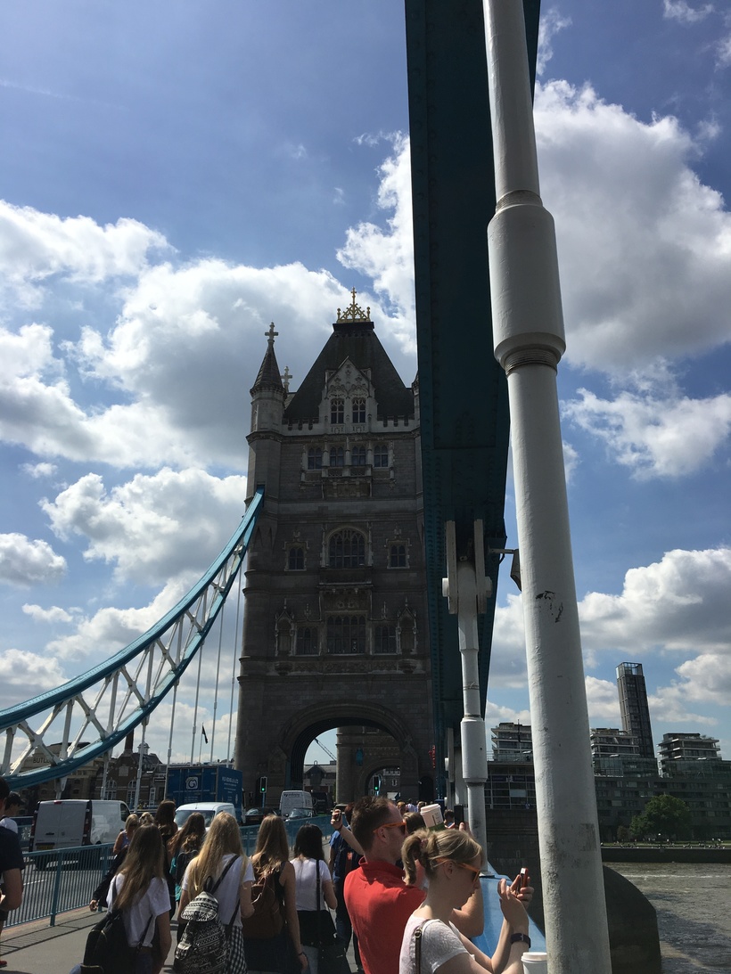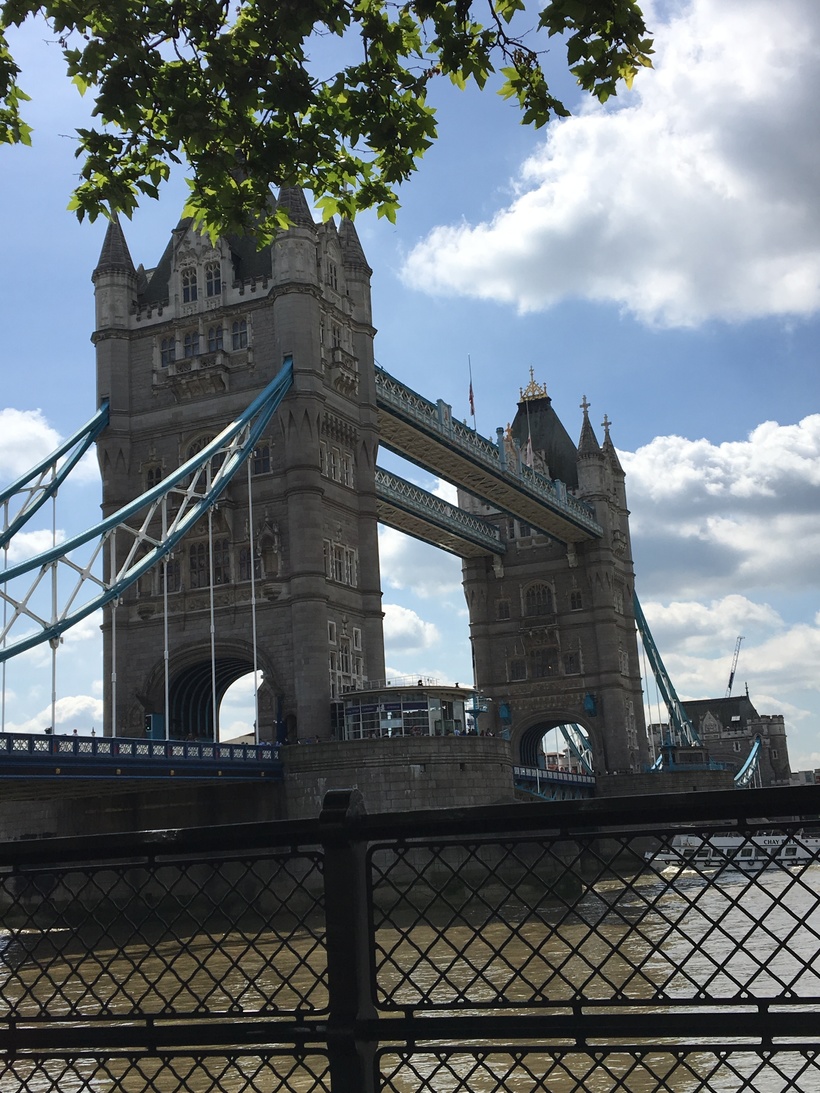Тауэрский мост, который пересекает Темзу и ведёт к Тауэру не менее известная достопримечательность. Мост построили в конце 19 века, он существует гораздо меньше, чем Тауэр, но одна из самах узнаваемых фотографий из Лондона, это Тауэрский мост.