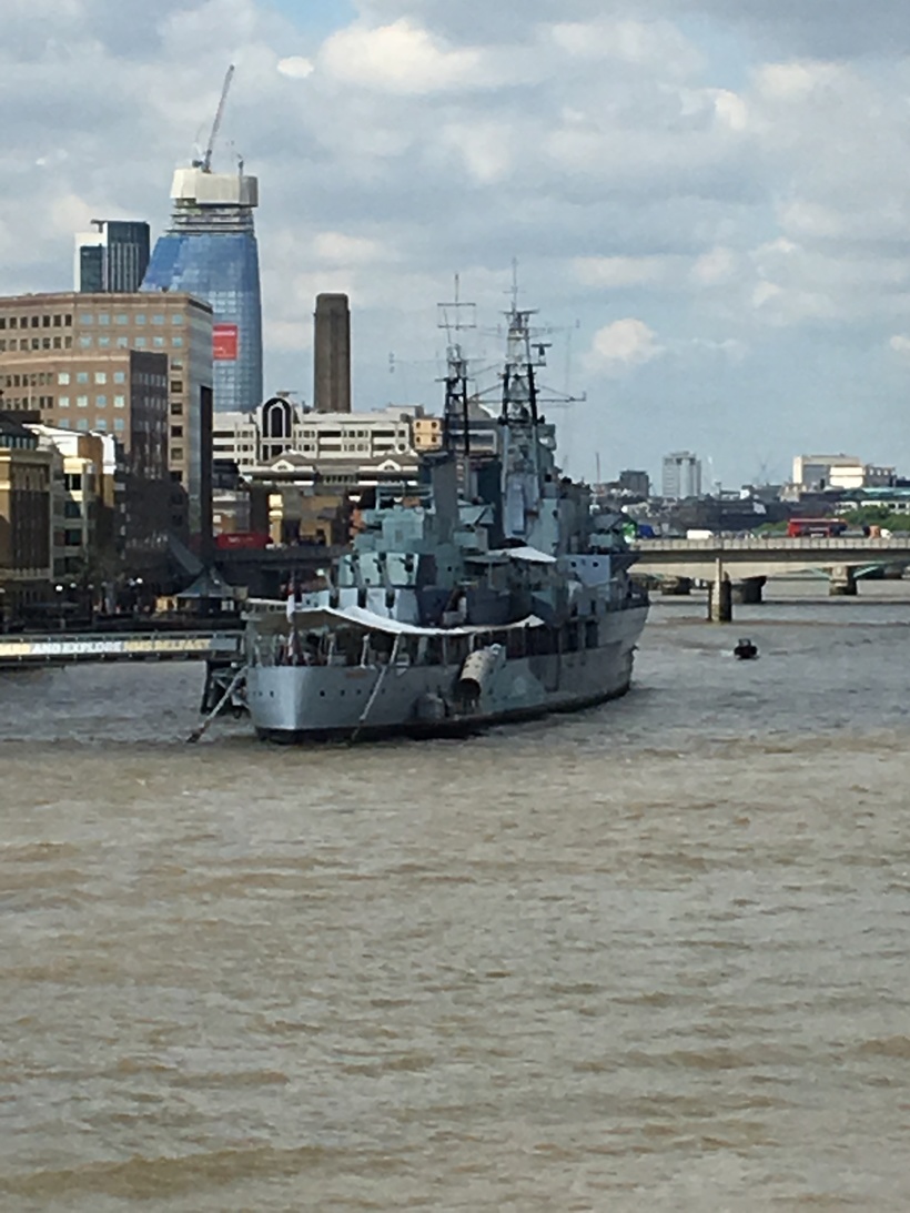 Виды с моста конечно потрясающие, но это совсем другой Лондон, не старинный, а современный. Правда немного повезло, увидеть старинный корабль на Темзе. Вода в реке, очень похожа по цвету на Москву реку. Синего цвета, к сожалению, совсем нет.