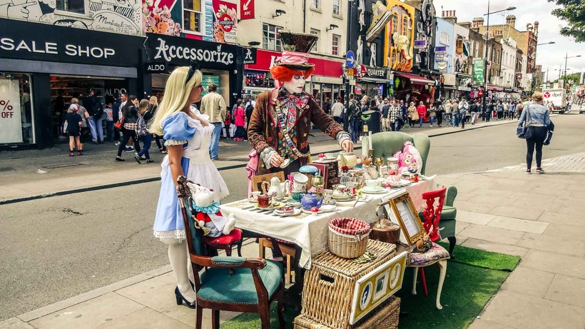 Камден-маркет – очень необычное место. Это не один какой-то огороженный сеткой-рабицей рынок, это несколько улиц, застроенных магазинами с фантастическими фасадами, и когда вокруг тебя вот это всё начинаешь чувствовать себя персонажем гротескной пьесы.