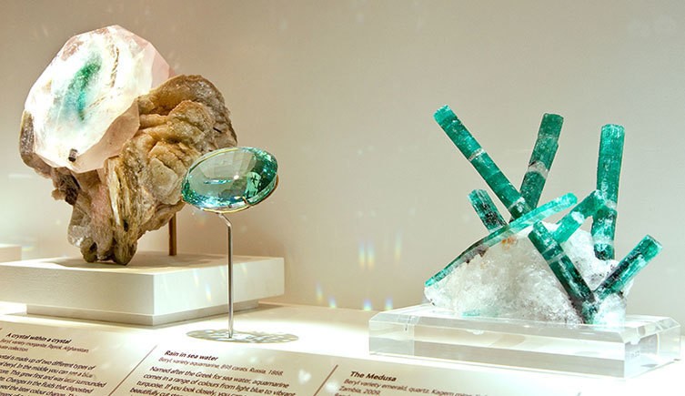 - Также есть отдельные залы с минералами, драгоценными камнями и метеоритами. На некоторых стендах есть пример обработанного камня рядом с его природной формой.