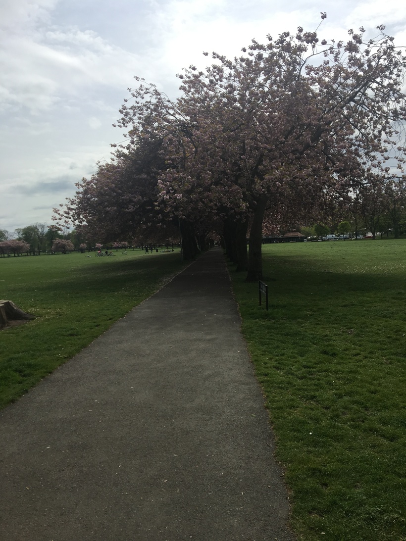 Я уже была в Эдинбурге с коротким визитом осенью. Тогда я не успела посетить парк Медоус и, честно говоря, ничего о нем на тот момент не знала. Сначала я шла по знакомым центральным улицам, узнавая Эдинбург и радуясь встречи с ним. Дальше пошли уже не знакомые мне улицы. Я шла по навигатору и скоро вдали показался парк. Мне повезло, розовые деревья были хорошо видны издалека.