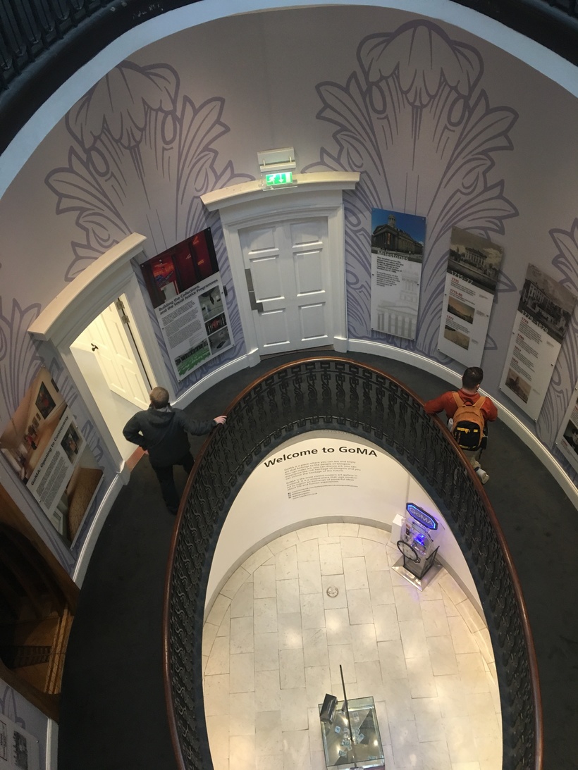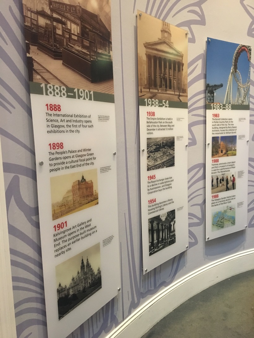 Выйдя на лестницу на одном из этажей, я обнаружила выставку информационных стендов, посвящённую истории Глазго.