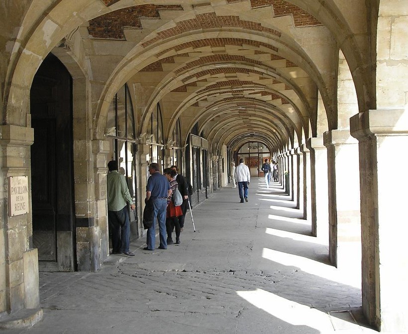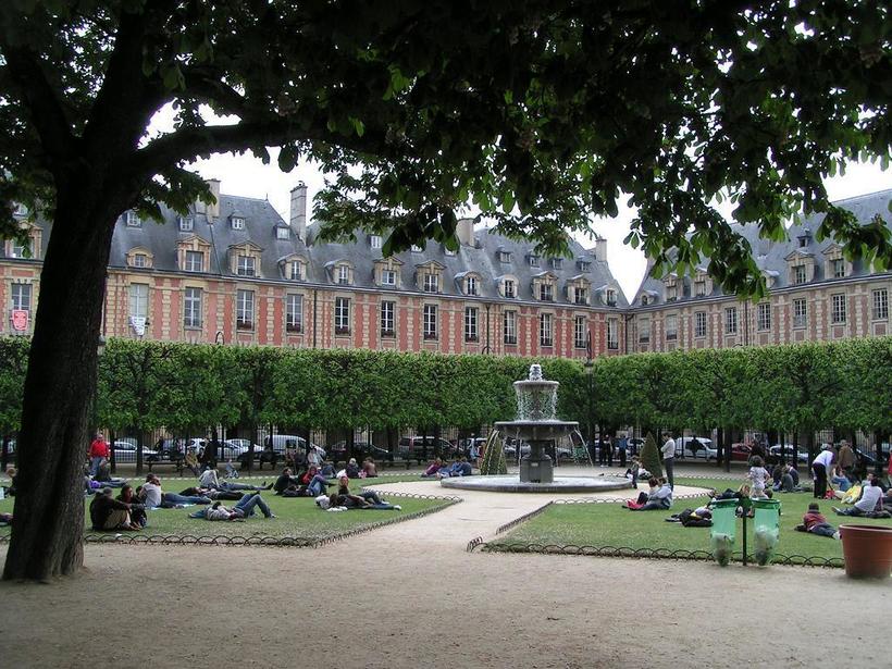 Что делать. Сначала изумиться. Потом перевести дух, закрыть глаза, открыть их и все равно им не поверить. Ансамбль совершенно потрясающий. Я, как ни силился, не мог припомнить ничего подобного где-либо еще. Площадь Вогезов представляет собой совершенно идеальный квадрат. Длина каждой его стороны составляет 143 метра, не больше и не меньше. Если подумать, можно отыскать в мире другие квадратные площади, но Вогезы вдобавок составляют идеально симметричный ансамбль. Все здания на площади выдержаны в едином стиле. Их 36 штук и одни практически зеркально отражают другие. От такого зрелища голова может закружиться.