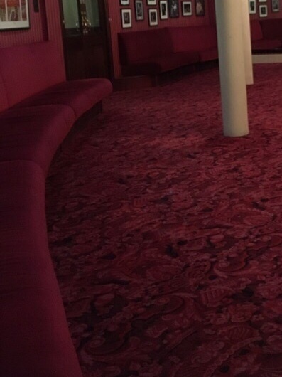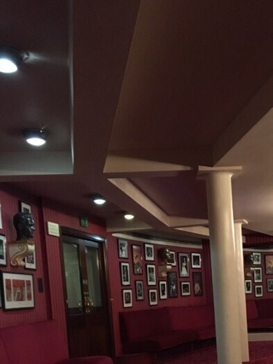 Конечно, в коридорах много фотографий артистов на стенах. Интерьеры традиционно в красно-бордовых тонах.