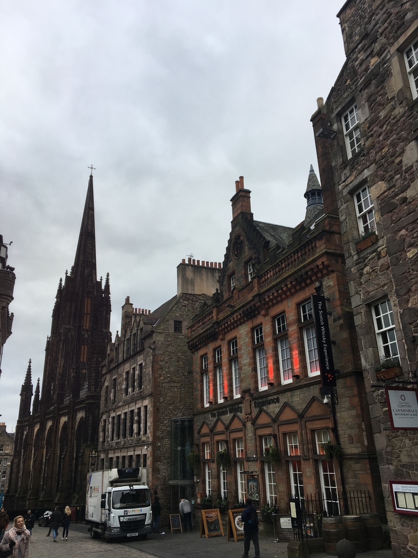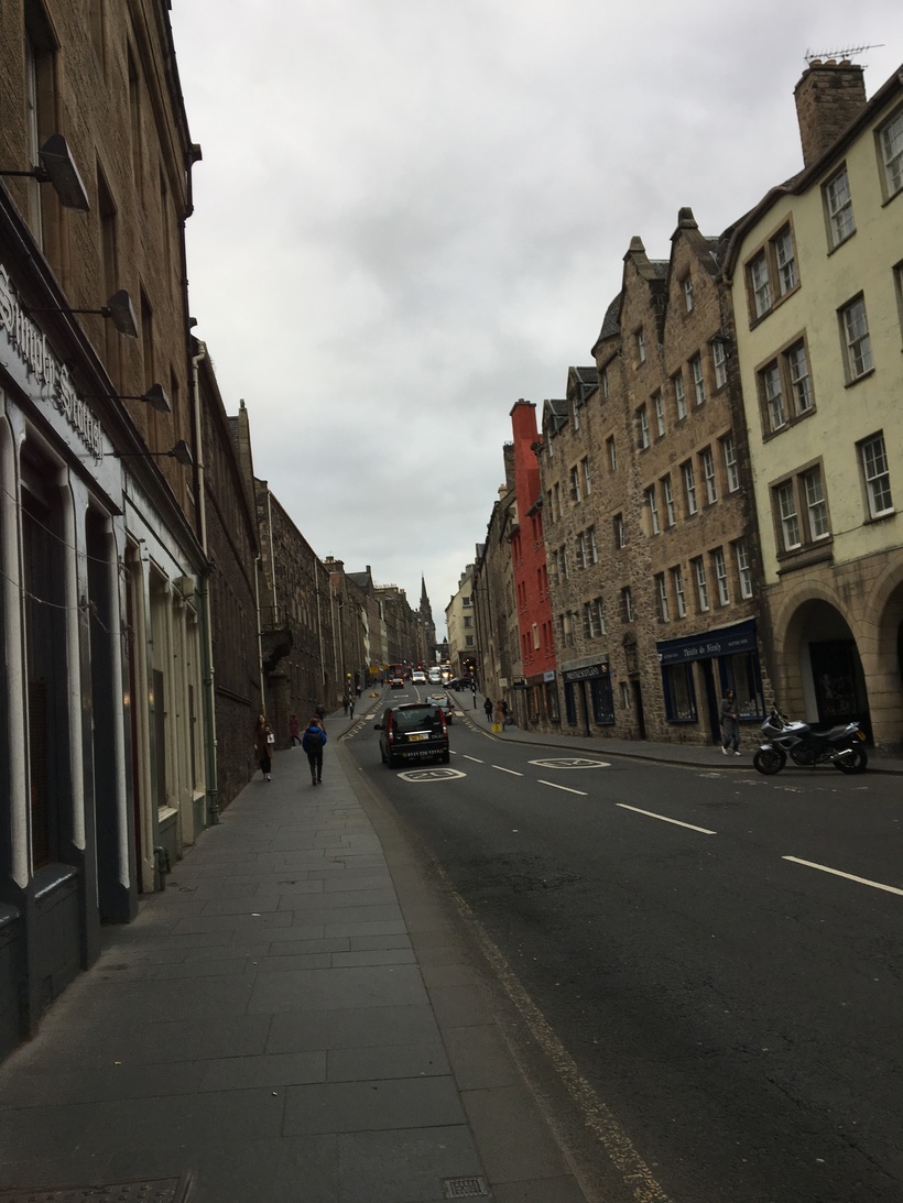 Третий и последний день моего посещения Эдинбурга начался с осмотра Старого города. Старый город расположен между Эдинбургским замком и Холирудским дворцом. Эти места я посетила в первые два дня моего прибывания в Шотландской столице. Главная улица Старого города, Королевская миля, как раз идёт от дворца к замку ( или наоборот). Нетрудно догадаться, что по этой улице ездили короли в два главных здания Эдинбурга. Здания на улице очень хорошо сохранились, они серые, древние, местами закопченные, как будто в камень веъелся уголь, которым отапливали дома много лет назад.