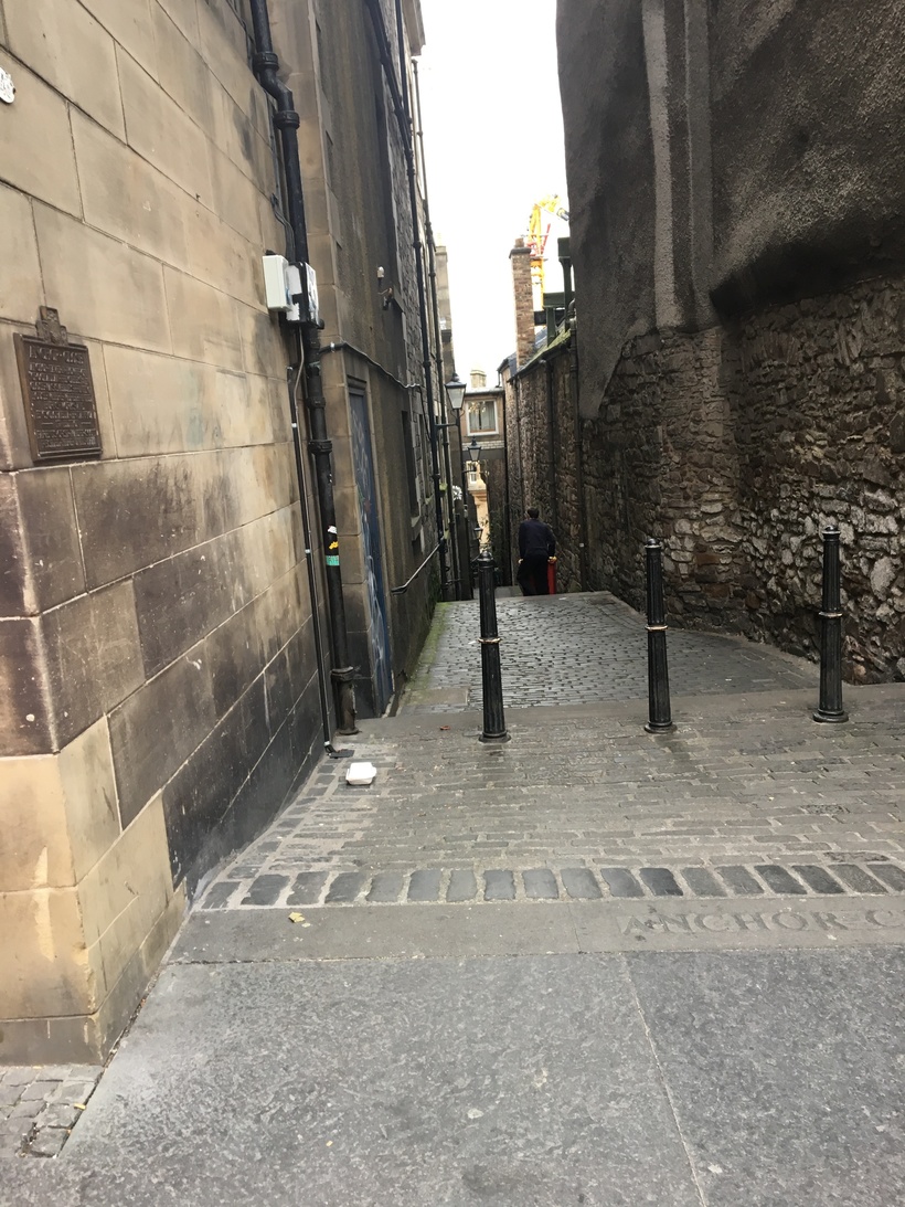 По улице, конечно, можно идти по разному, в первый день когда я пробежала по ней бегом к открытию Эдинбургского замка, я особо ничего не увидела. Сейчас проходя медленно, рассматривая дома, заходя в магазины, впечатление совсем другое. Вот и знаменитый тупик Мэри Кинг, одна из достопримечательностей Старого города.
