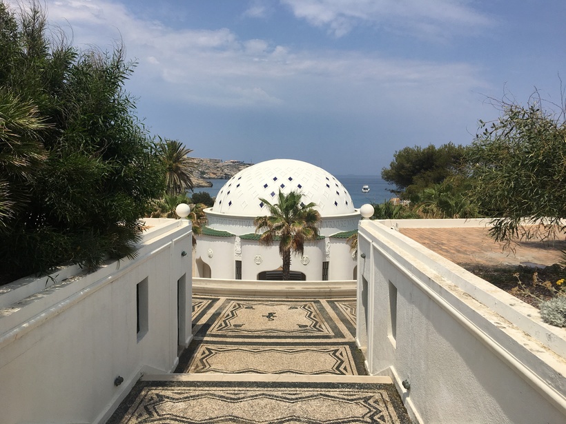 В общем, если коротко, то дело было так. В начале прошлого века на этом месте были активно действующие горячие источники (которые, кстати, были известны еще в Древней Греции). В 1929 году итальянцы, которые в то время владели островом, построили там очень симпатичные купальни или термы в псевдомавританском стиле, которые долгое время использовались по назначению.