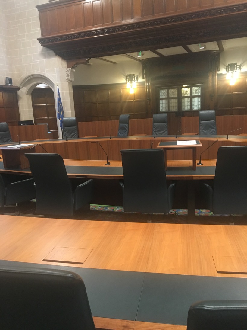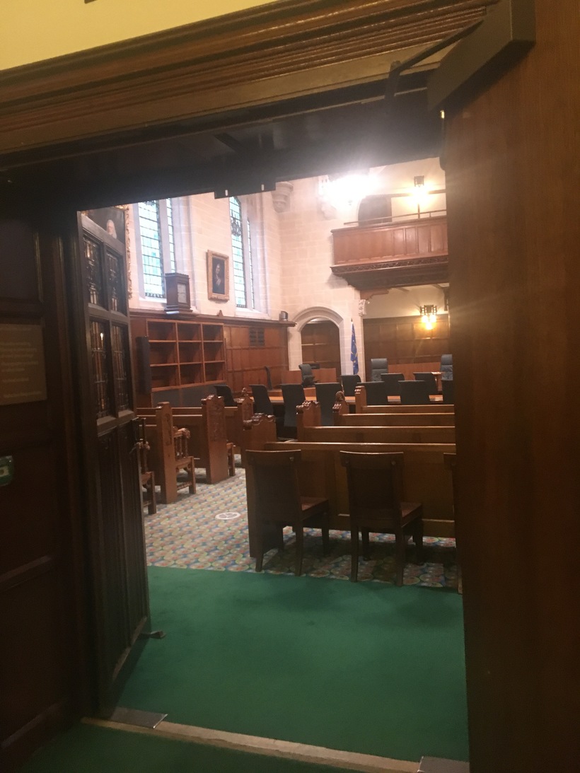 На плакате было указаны часы посещения для публики. Неожиданно с неба посыпались крупные капли дождя и я особо не задумываясь вошла внутрь. Похоже туристы сюда особо не заходили, потому-что охранник смотрел на меня с явным удивлением. Я сказала что пошёл дождь, что заставило охранника выглянуть на улицу, так как день был погожий и дождя явно не ждали. Я спросила могу ли я посетить Суд и добавила, что я турист, все это разумеется на не совсем хорошем английском.