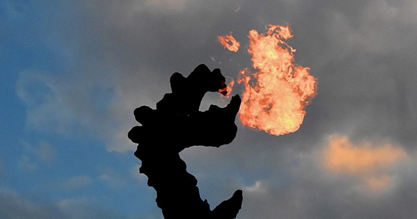 Сам дракон - очень даже натуральный, знаете, никаких тут вам сказочных украшений. Страшенное чудовище, все в буграх, с открытой пастью, так и кажется. что он сейчас кого-нибудь слопает. А огонь только добавляет ему атмосферности.