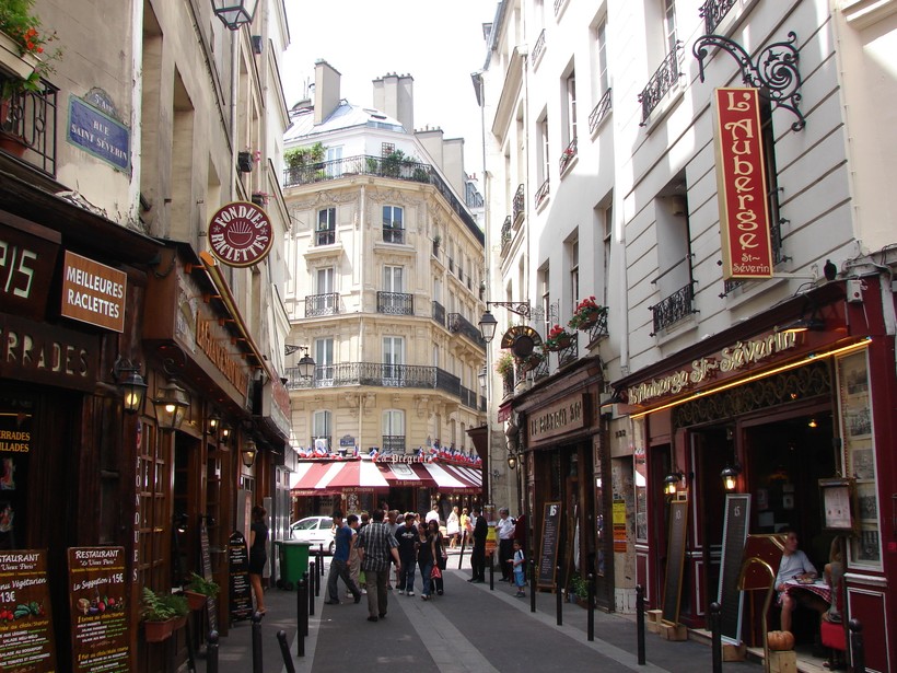Что ещё мне понравилось – это огромнейшее количество разных маленьких магазинчиков, бистро, кафе. Они по духу отличаются от тех, что находятся на Монмартре. На Монмартре всё-таки царит дух свободы, дух творчества. Здесь это немножко по-другому. Здесь за счёт большого количества учащейся молодёжи просто другое настроение. И цены, скажем так, чуть-чуть пониже, потому что на Монмартре, конечно, в местных кафе и магазинах с туристов дерут дай боже. А вот в Латинском квартале вполне можно найти себе заведение по душе, причём выбрать такое, куда ходят в основном местные – просто смотреть по сторонам и отмечать, где туристов меньше, где сидят сами французы, и получить ни с чем не сравнимое удовольствие от этого чисто французского развлечения – сидения в кафе, поедания кофе с круассаном... Вся рекламная картинка - она здесь доступна, причем от неё самые приятные впечатления.